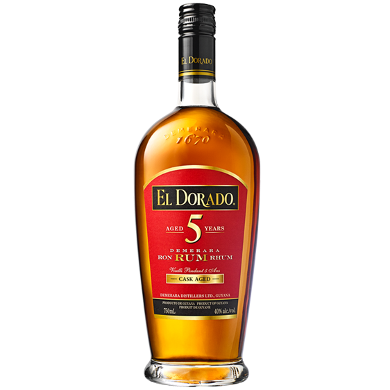 El Dorado 5 years Dark Cask Aged Rum is afkomstig uit Guyana. Het betreft een blend bestaande uit diverse rum distillaten die allen minstens vijf jaar zijn gerijpt. Deze rijpingsperiode vindt plaats op vaten die voorheen bourbon hebben bevat, waardoor zachte, zoete en licht kruidige invloeden opvallen in het karakter van deze El Dorado 5 years.